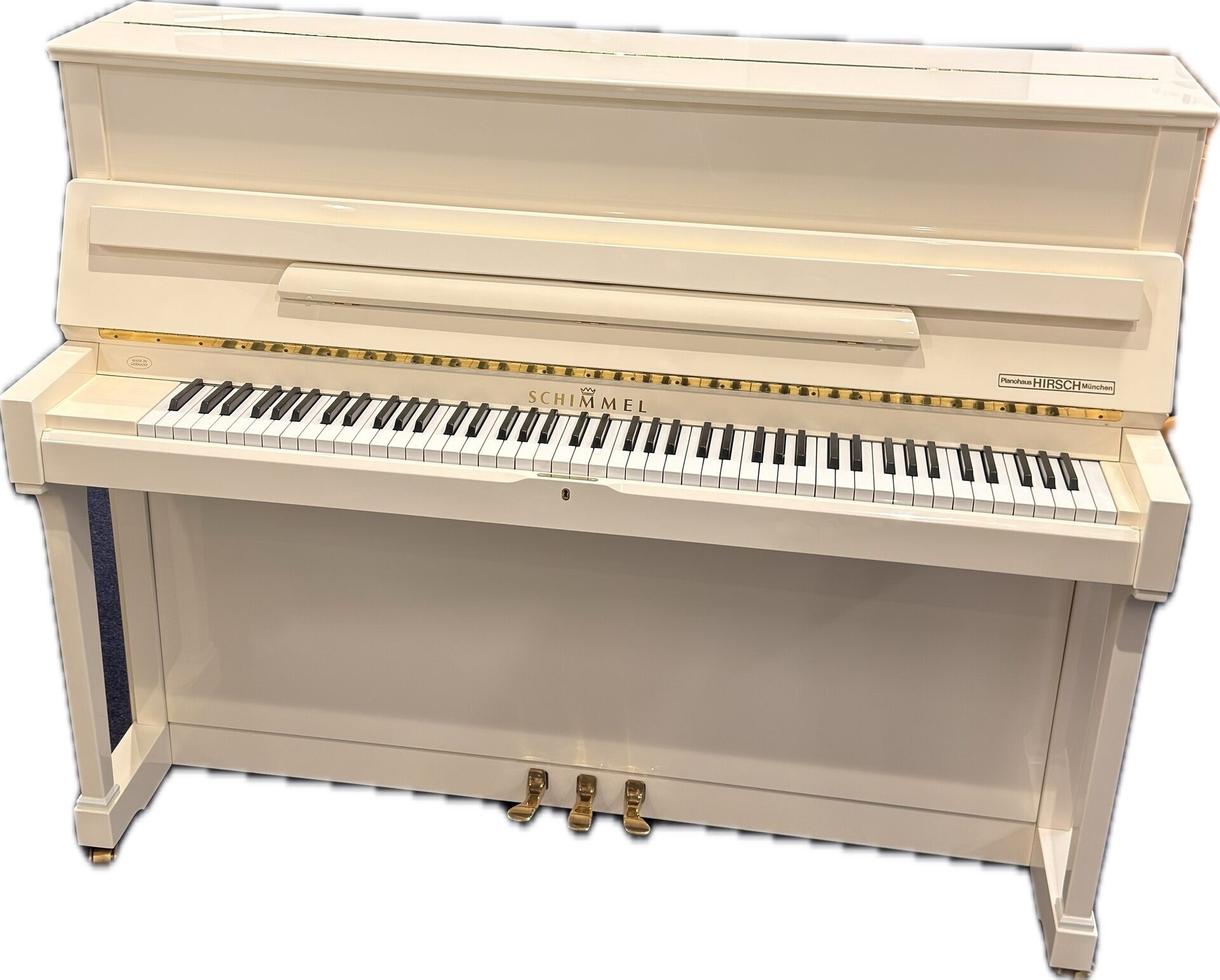 Ein wunderschön gepflegtes Klavier der Marke SchimmelAusführung weiß poliert mit Klappenschloss und Messingrollengebraucht, Baujahr 1994