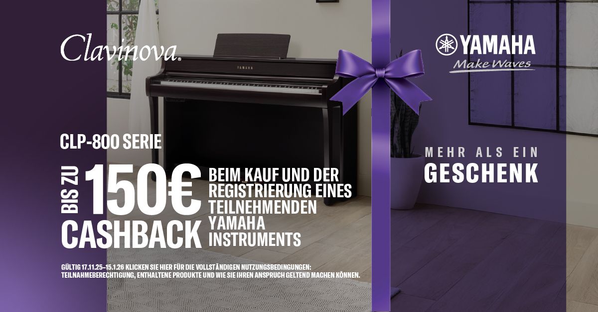 Sichern Sie sich jetzt bis zu 150€ Cashback beim Kauf ausgewählter Yamaha Instrumente